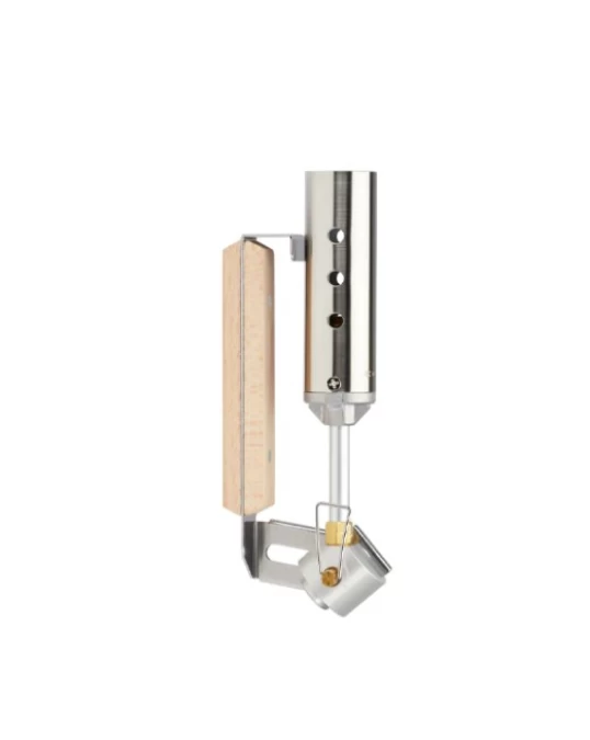 The Folding Torch from Snow Peak easily screws on a canister of iso-butane and with the simple turn of a knob releases gas to ignite a glowy fire. Burn baby burn!